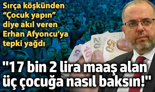 7 MİLYON ASGARİ ÜCRETLİBu açıklamaya tepki gösteren vatandaşlar, Sosyal Güvenlik Kurumu’na bildirilen prime esas kazançlara göre Türkiye’de yaklaşık 7 milyon kişinin asgari ücretle çalıştığını hatırlattı. “Ayda 17 milyon iki lira alan asgari ücretlinin kendi karnını zor doyururken üç çocuğa nasıl bakacak” diye sordu."SEN BU AKLI İKTİDARA VER"Mesajlarda, kiraların tavan yaptığı, çarşı pazarın yangın yerine döndüğü, kredi kartlarının patladığı, halkın borca battığı ifade edilerek, Erhan Afyoncu’ya seslenen vatandaşlar, “Sen aklı bize değil iktidara ver de maaşları yükseltsin, halk sefalet içinde yaşamaktan kurtulsun” dediler.
